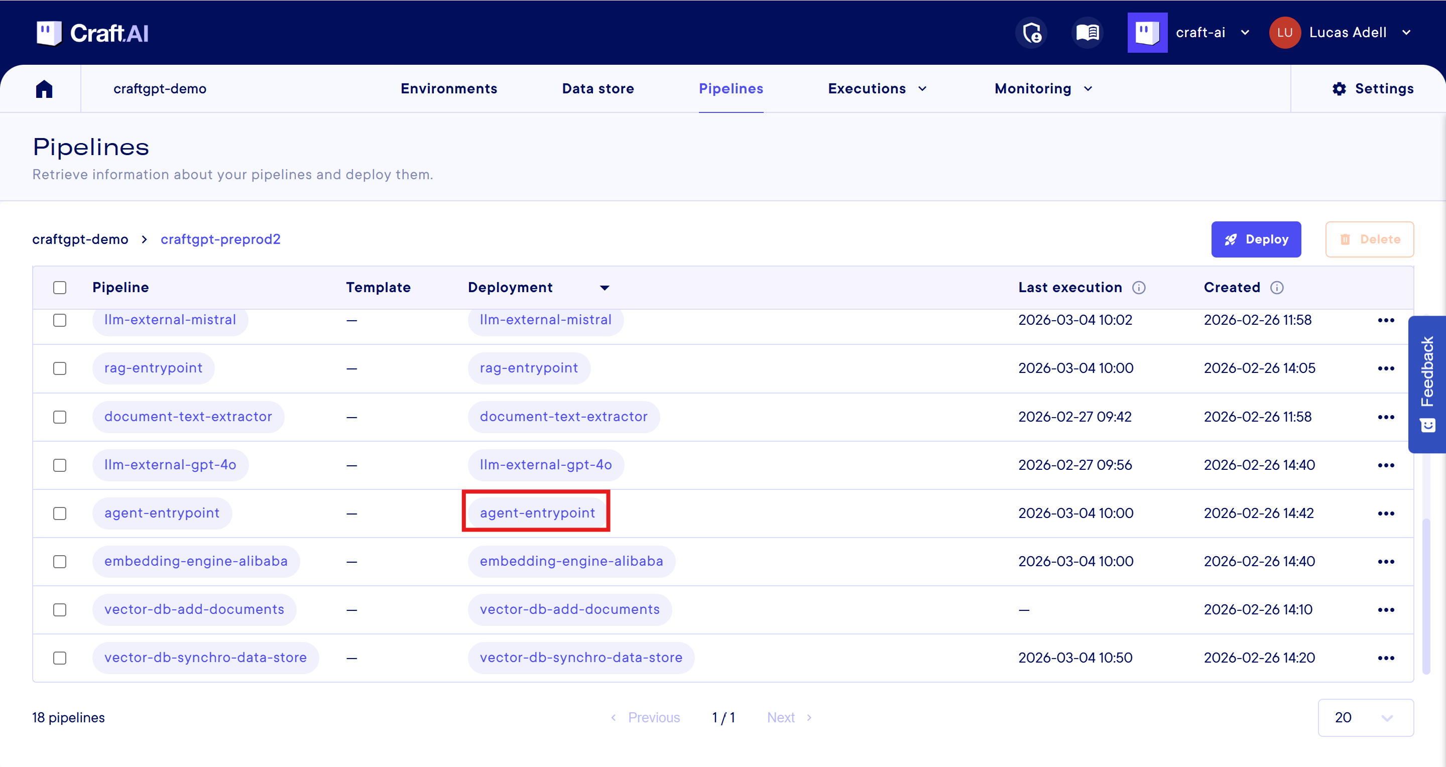 Vous trouverez le nom du déploiement à utiliser dans l'onglet "Pipeline" de votre environnement dans l'AI Studio.