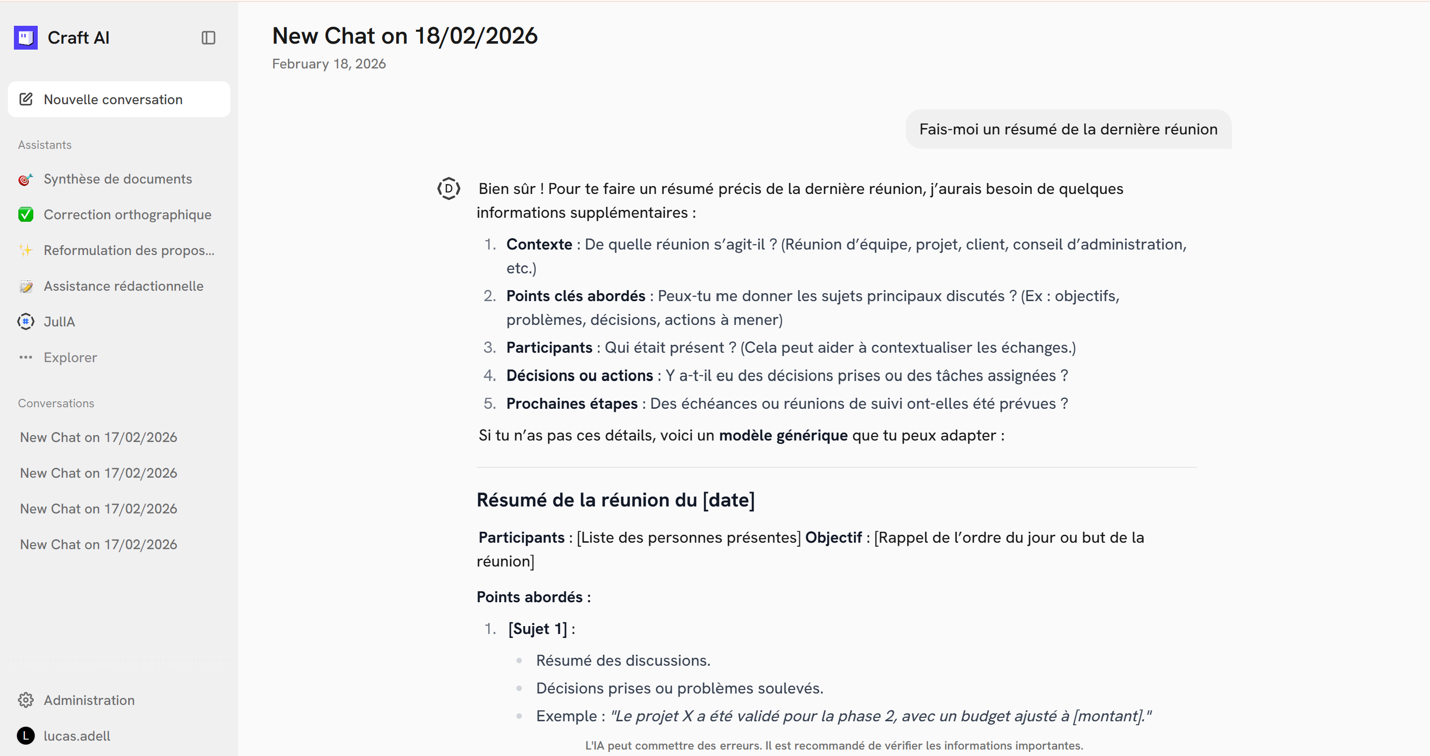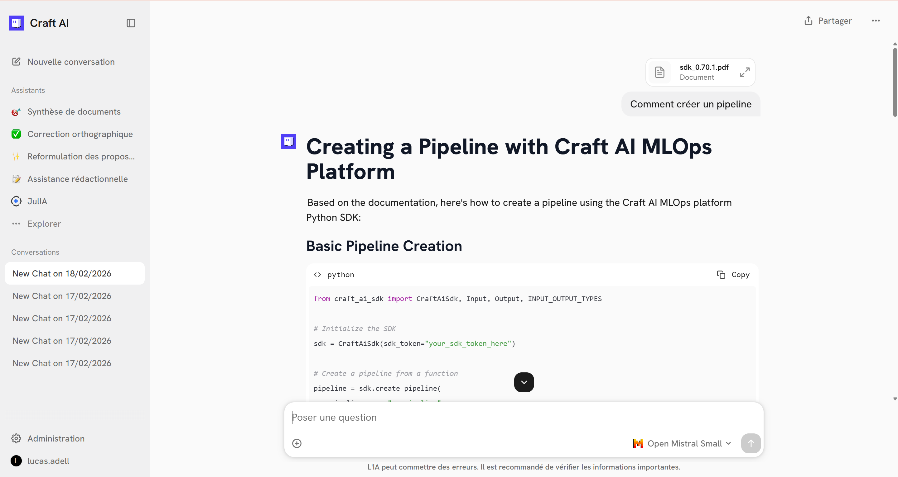 Une conversation peut être partagé à un autre utilisateur de Craft AI.