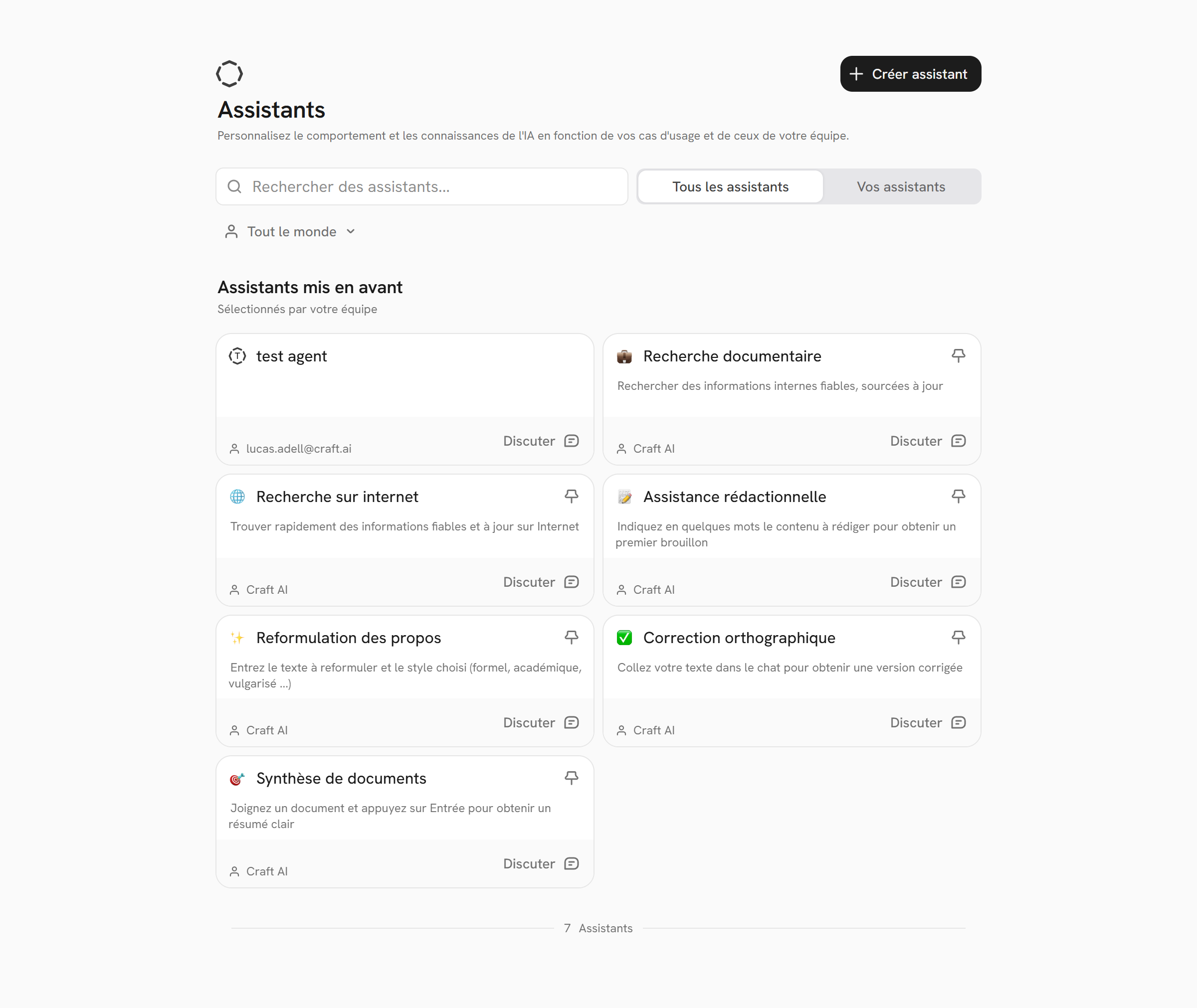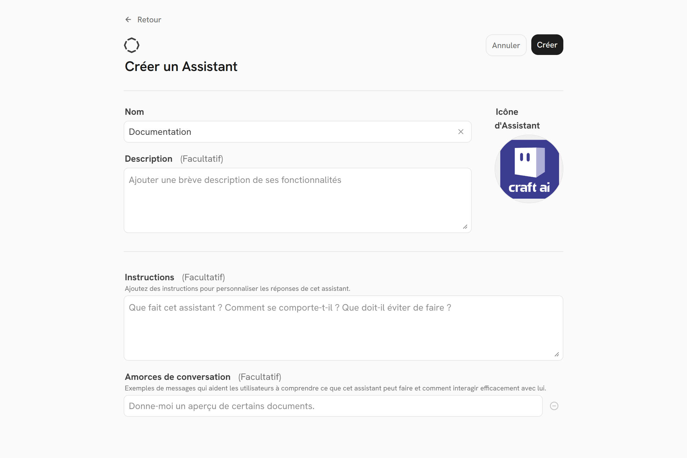 Craft AI vous permet de créer vos propres assistants personnalisés.