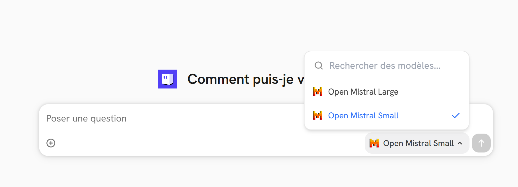 - Le modèle sélectionné s’applique à toute la conversation en cours