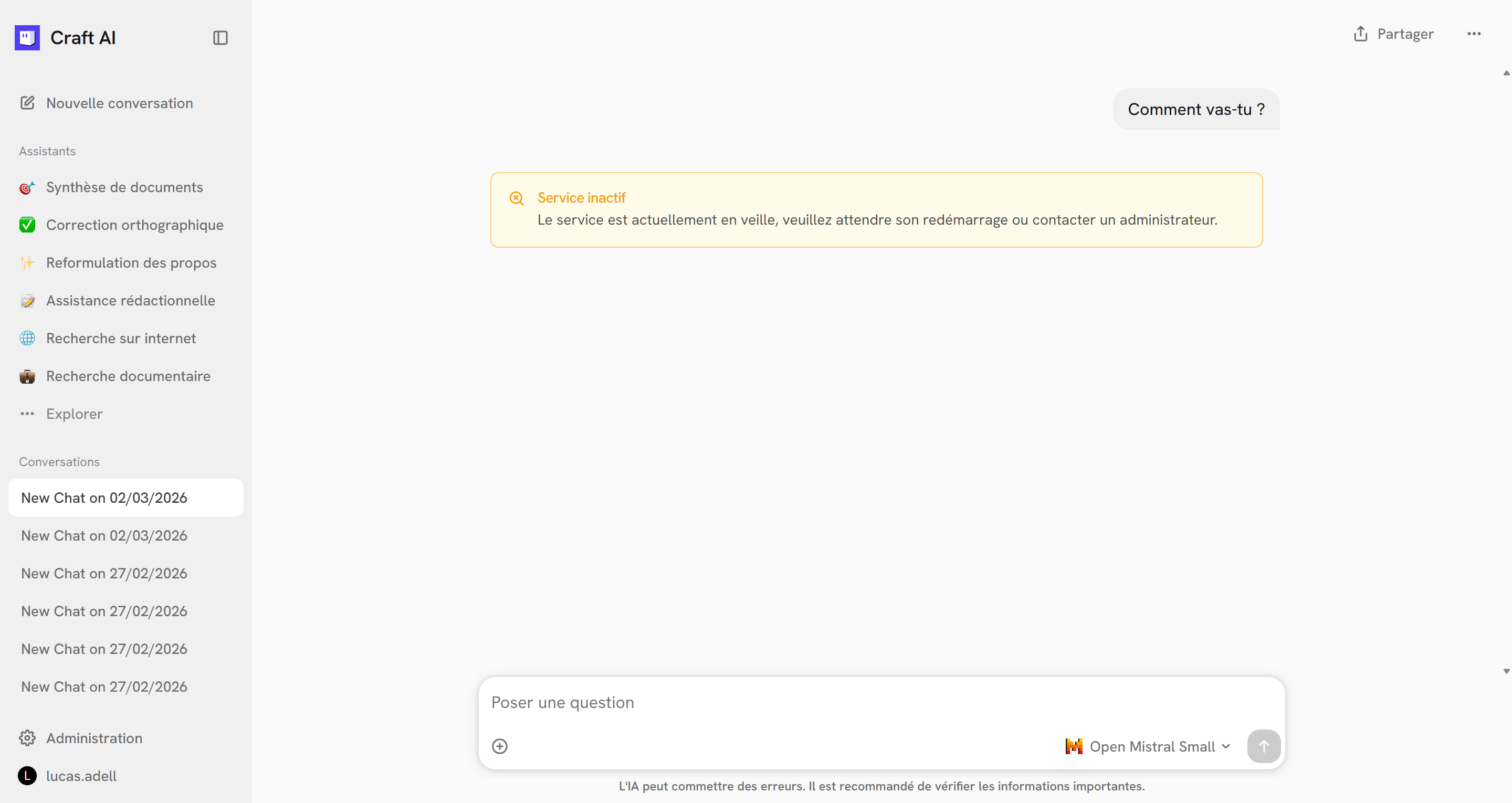 Une conversation peut être partagée à un autre utilisateur de Craft AI.